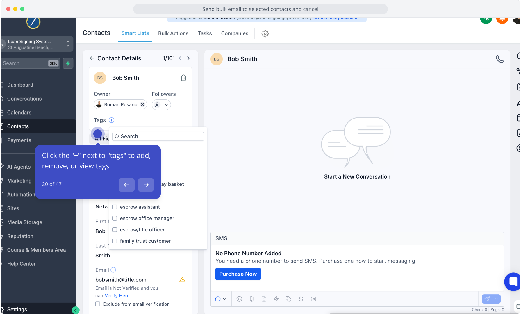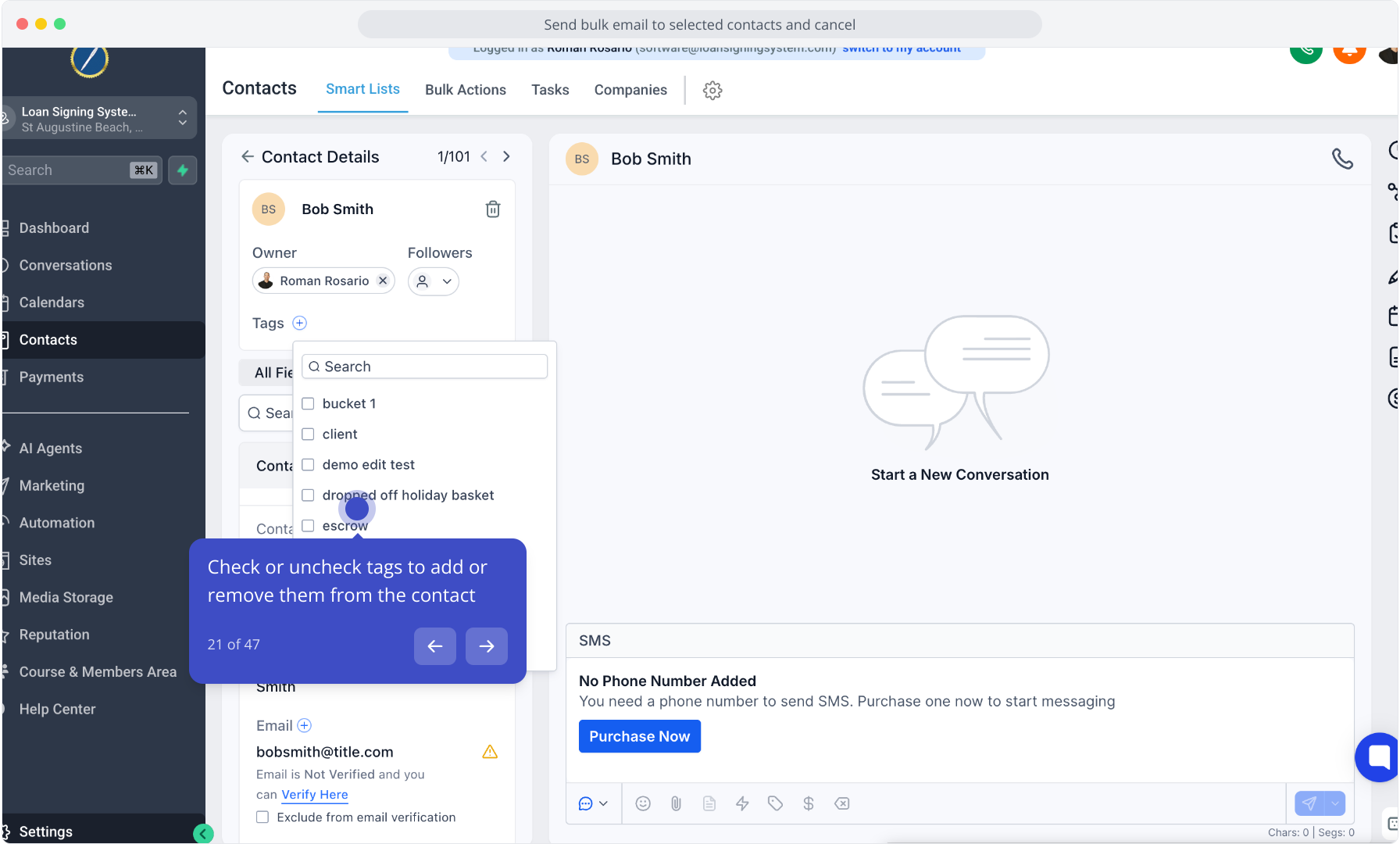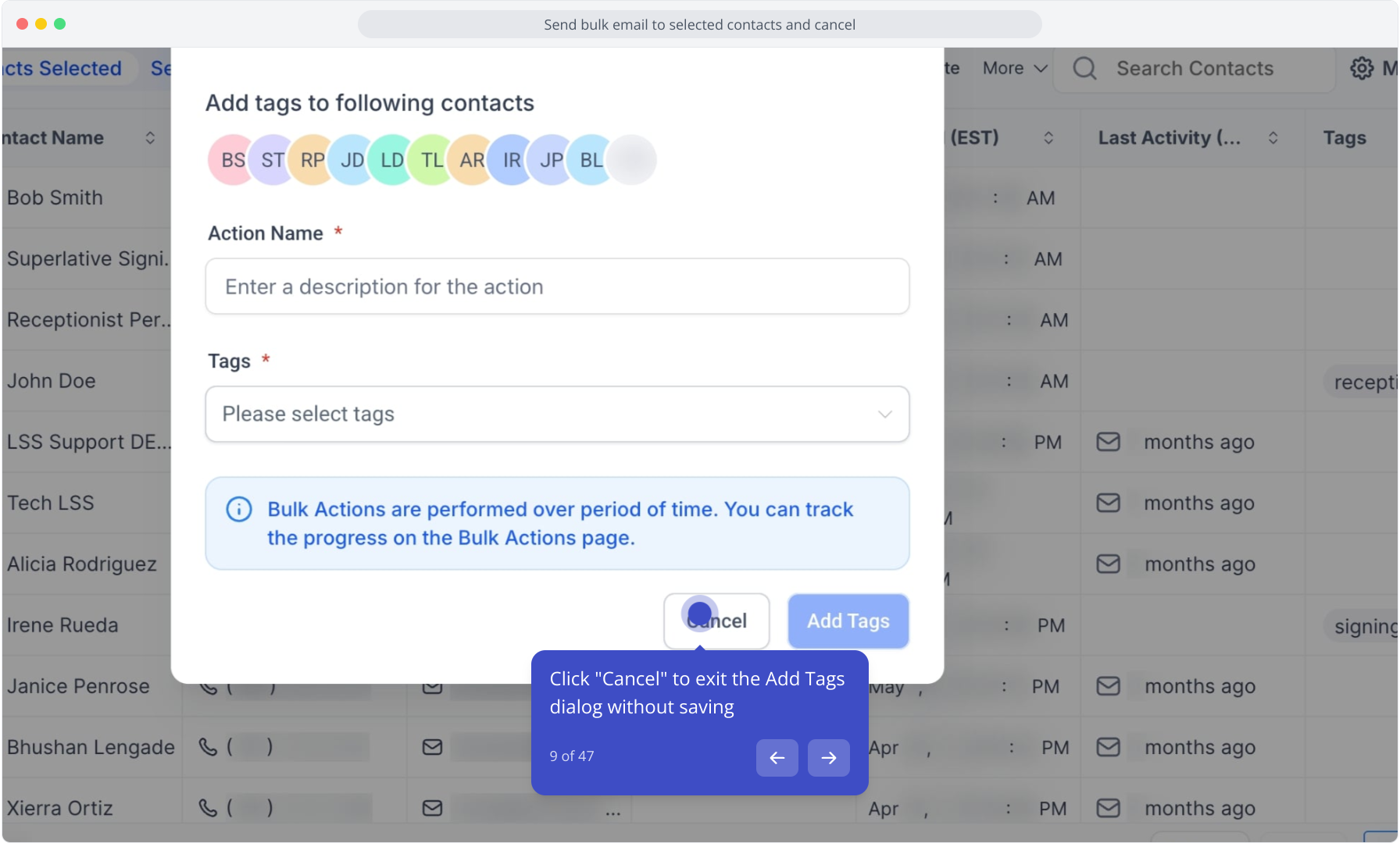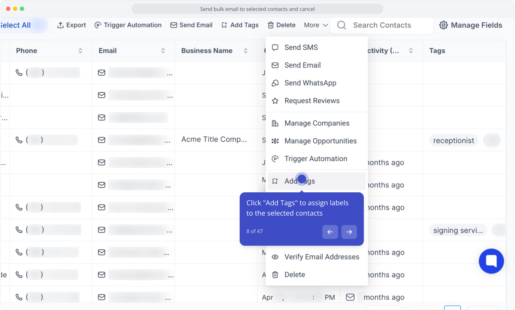 8. Click "Add Tags" to assign labels to the selected contacts