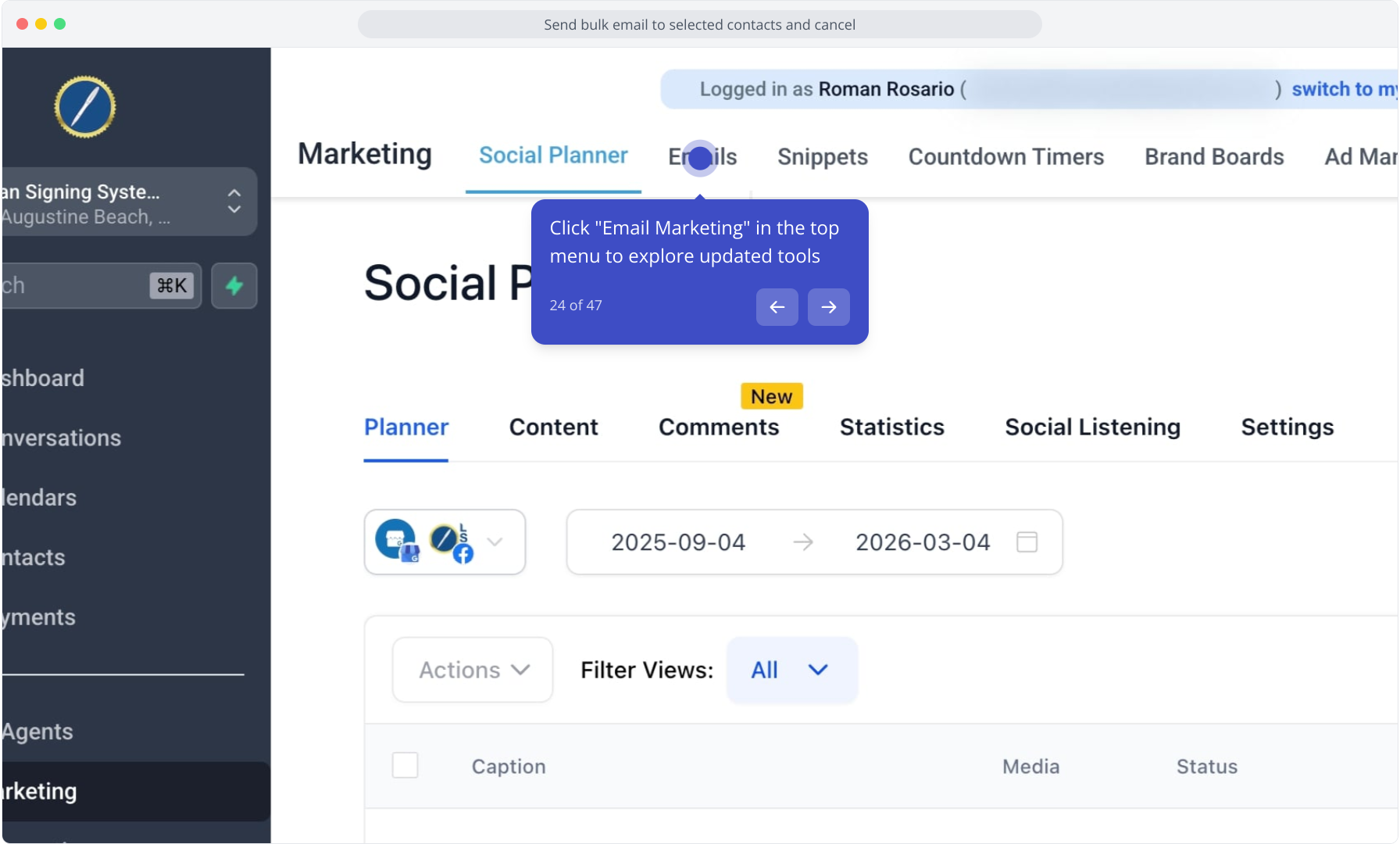 24. Click "Email Marketing" in the top menu to explore updated tools