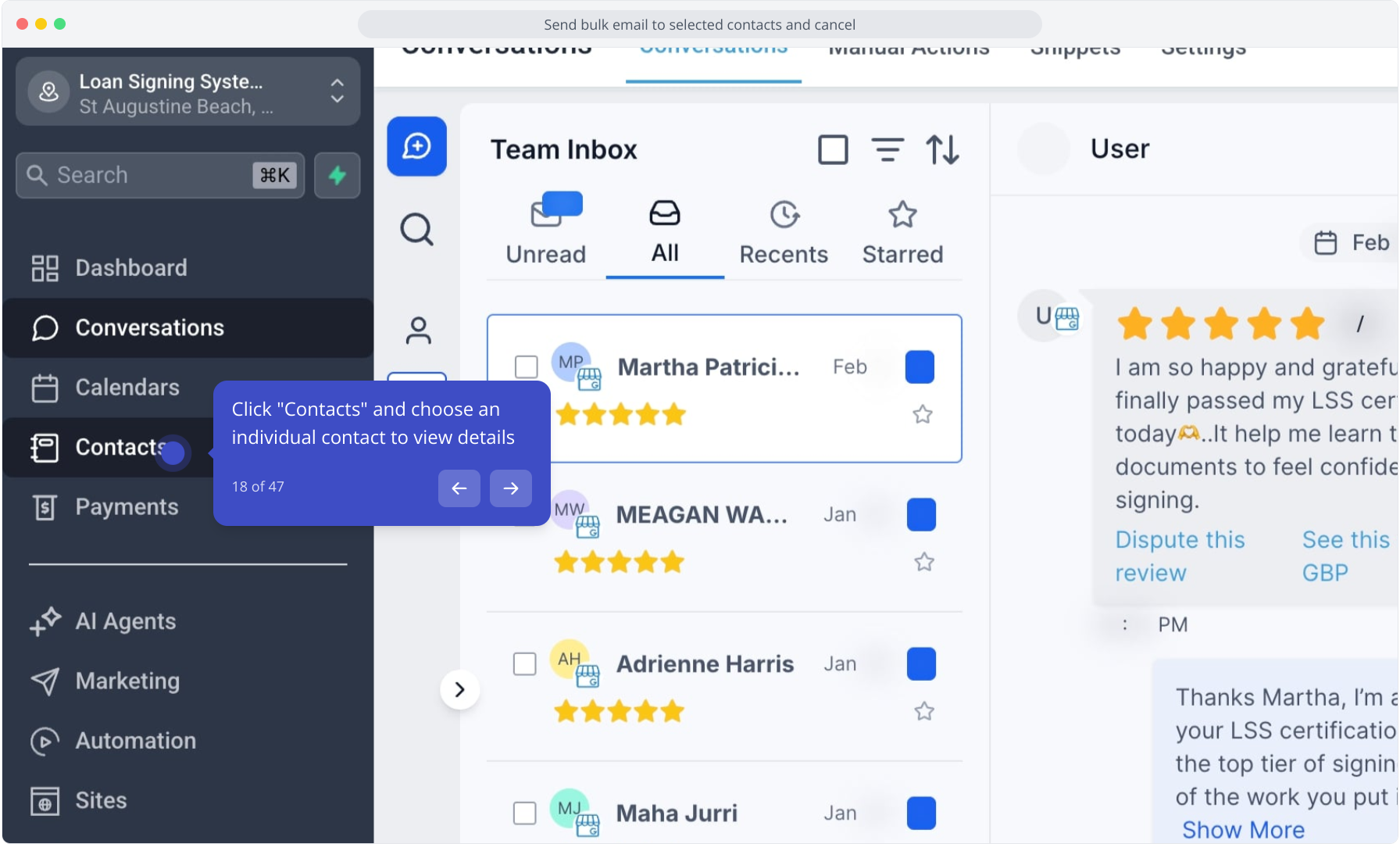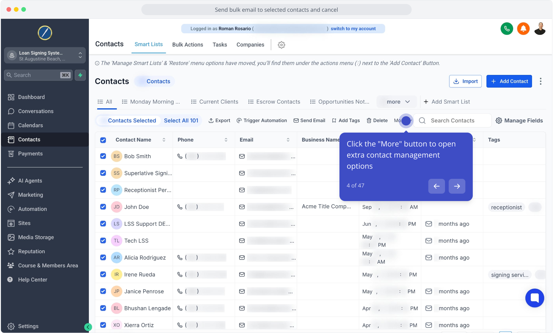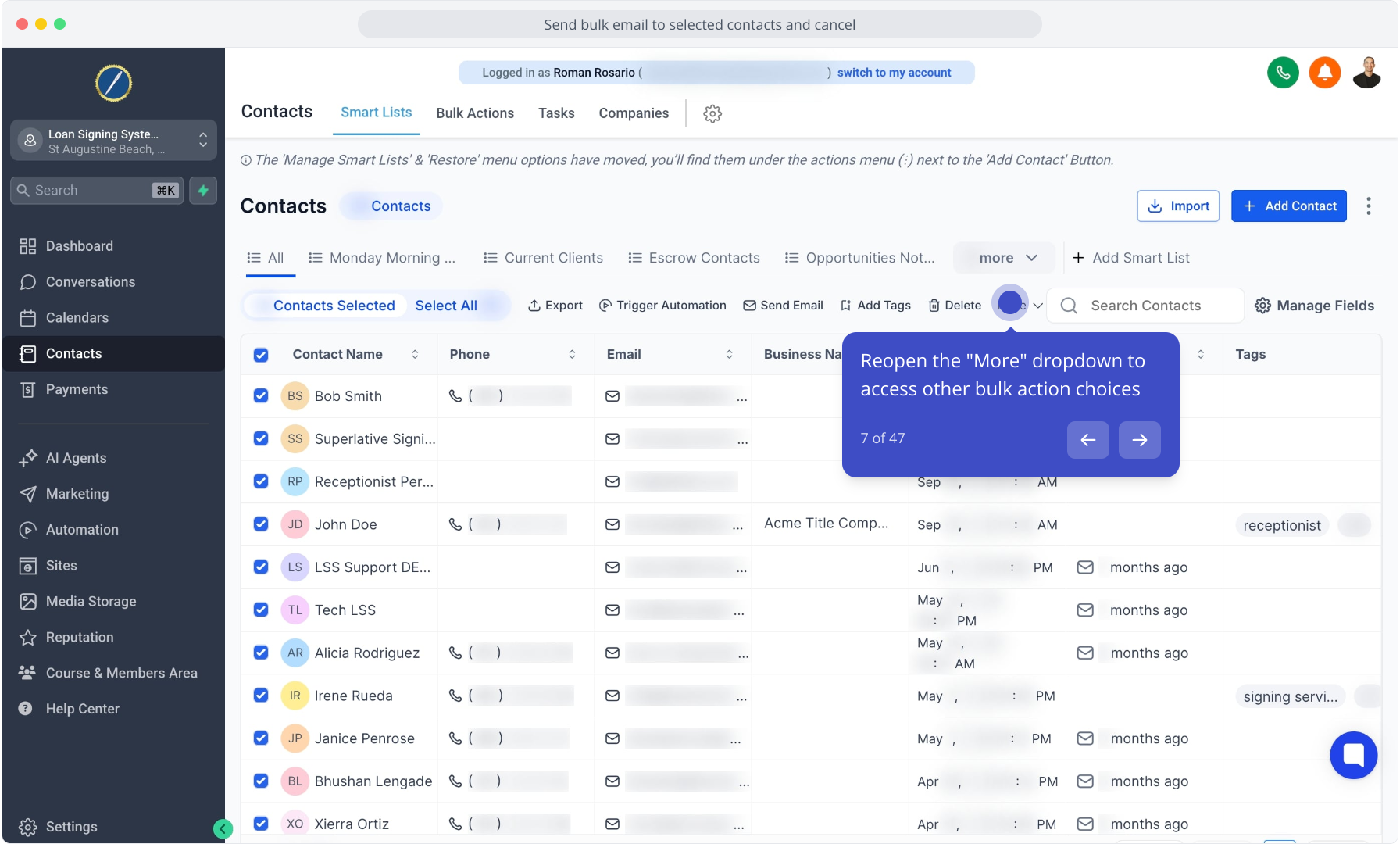 3. Select multiple contacts using the checkboxes to prepare a bulk action