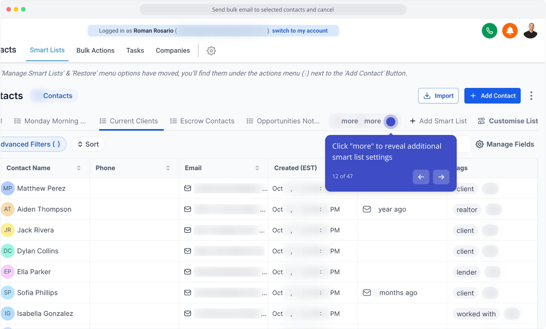 13. Click "Manage Smart Lists" to organize or edit your lists