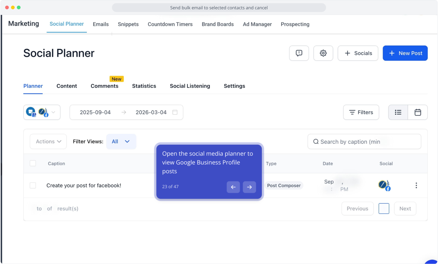 23. Open the social media planner to view Google Business Profile posts