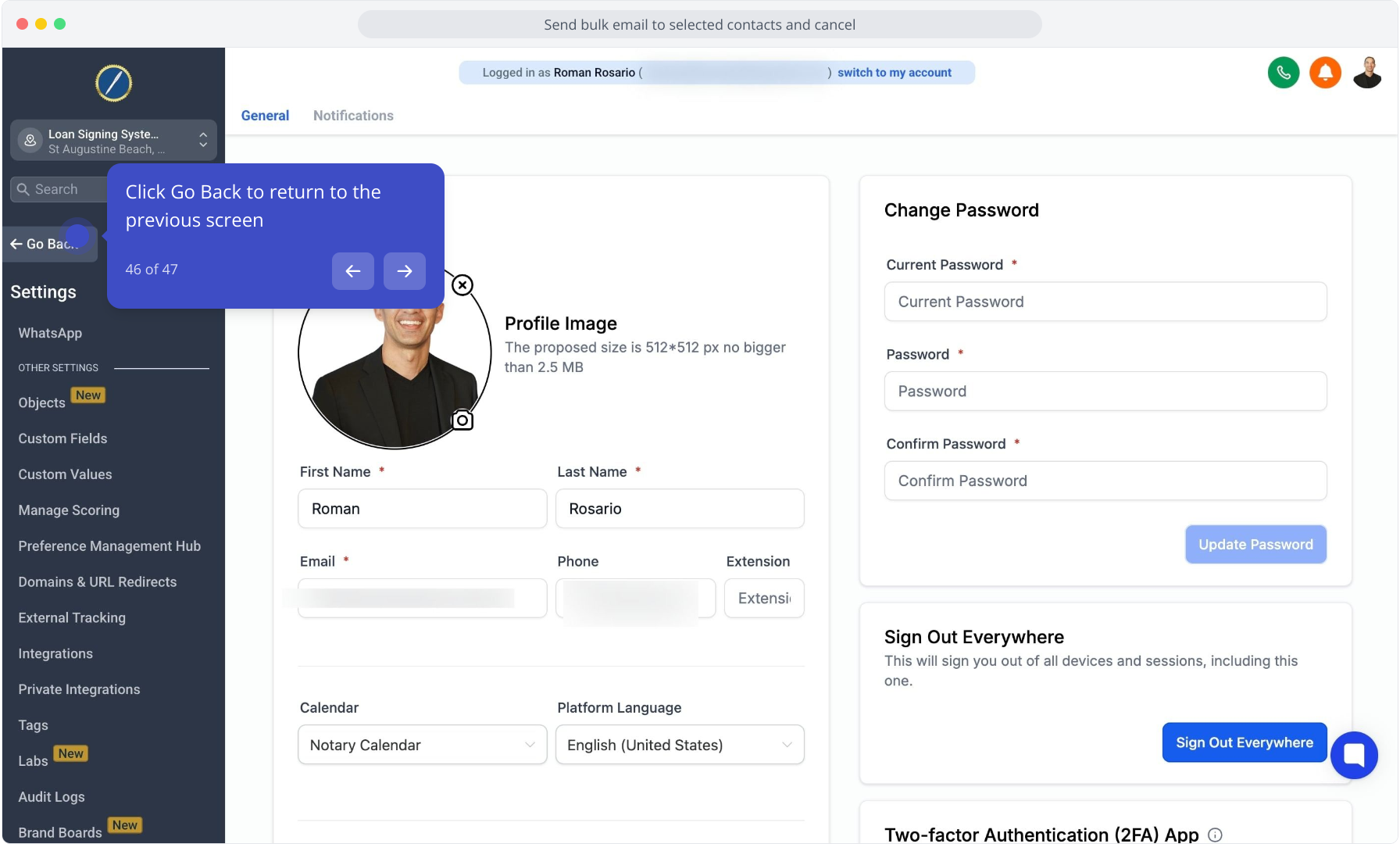 44. Select My Profile to manage your personal account settings