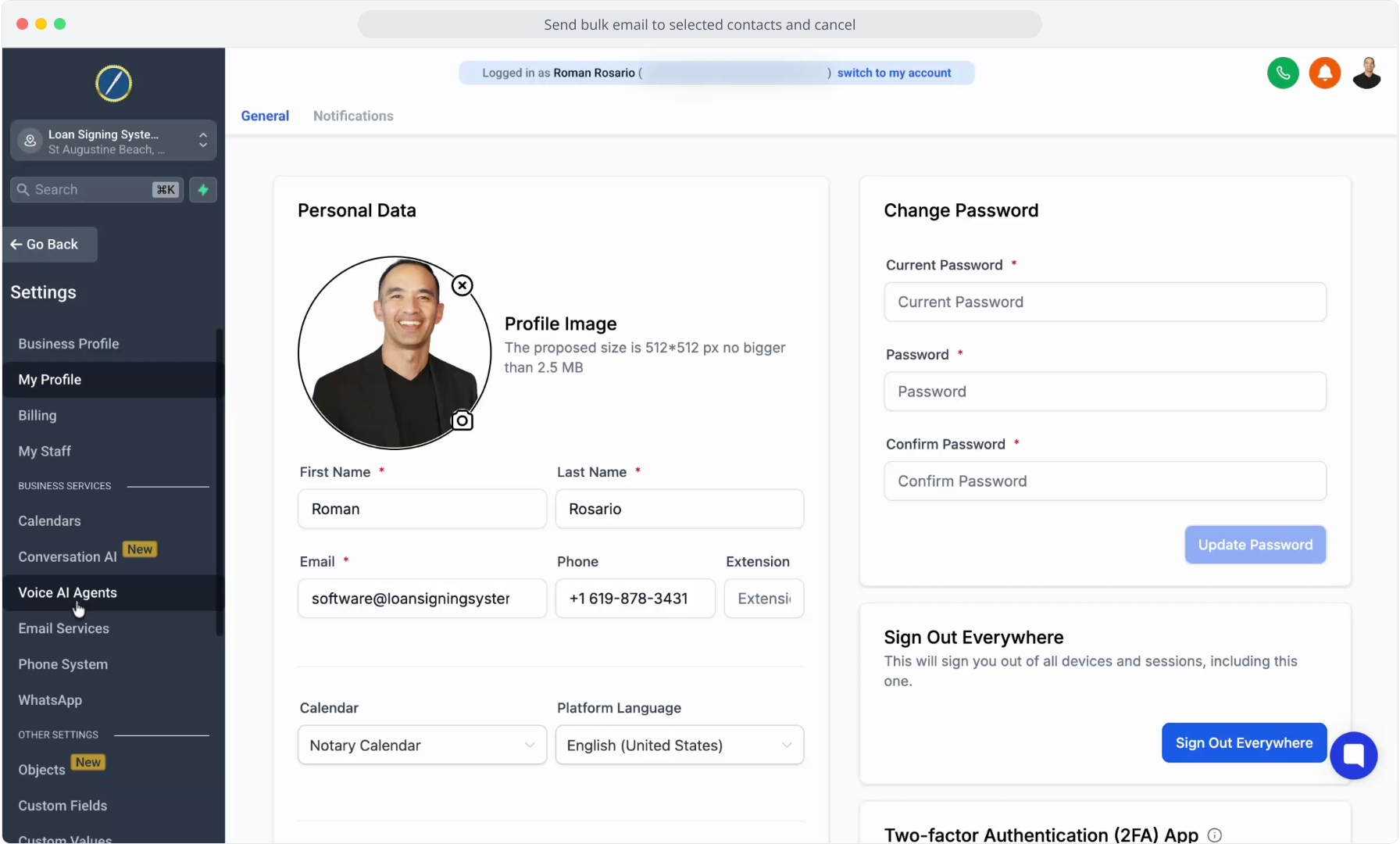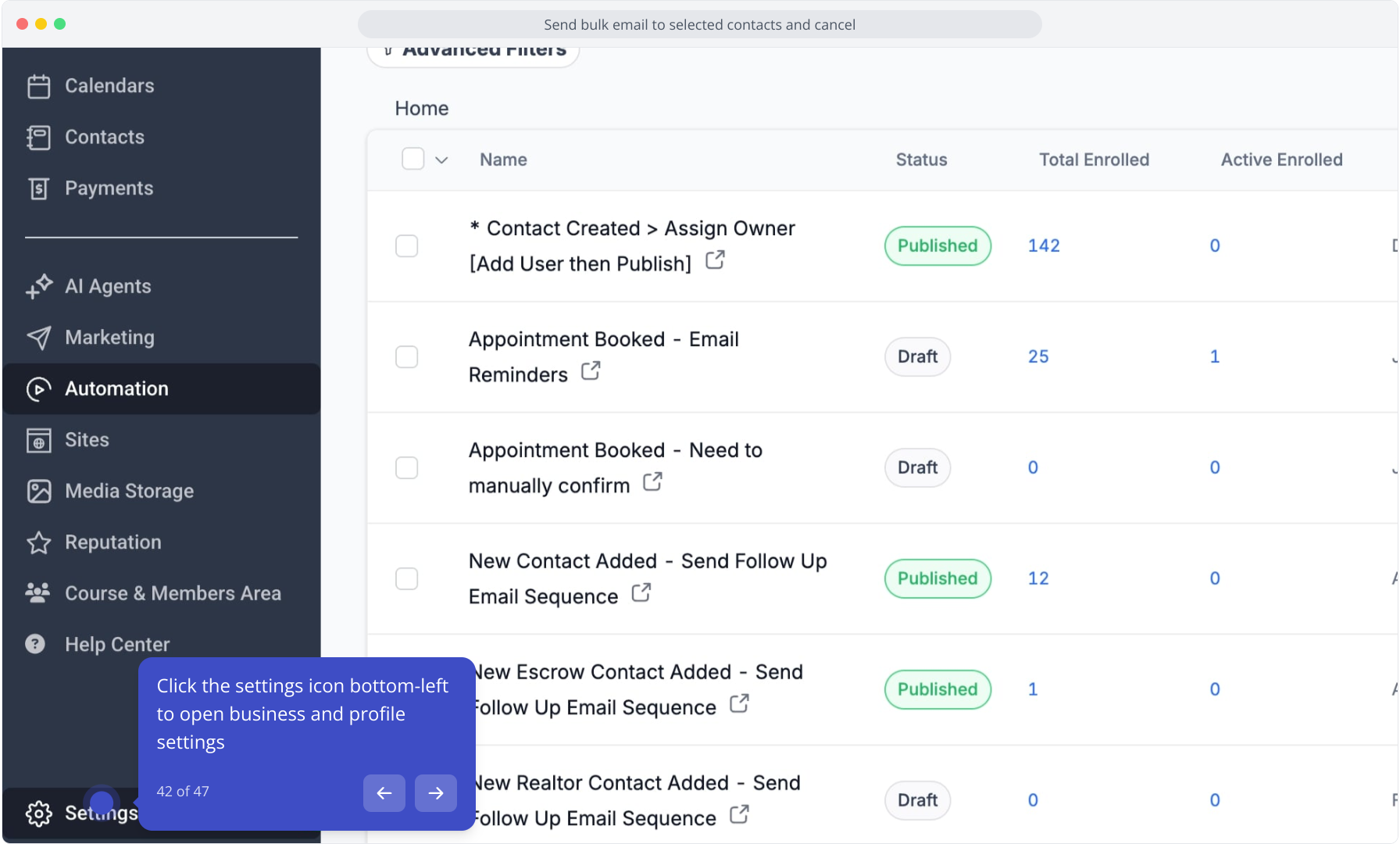 42. Click the settings icon bottom-left to open business and profile settings