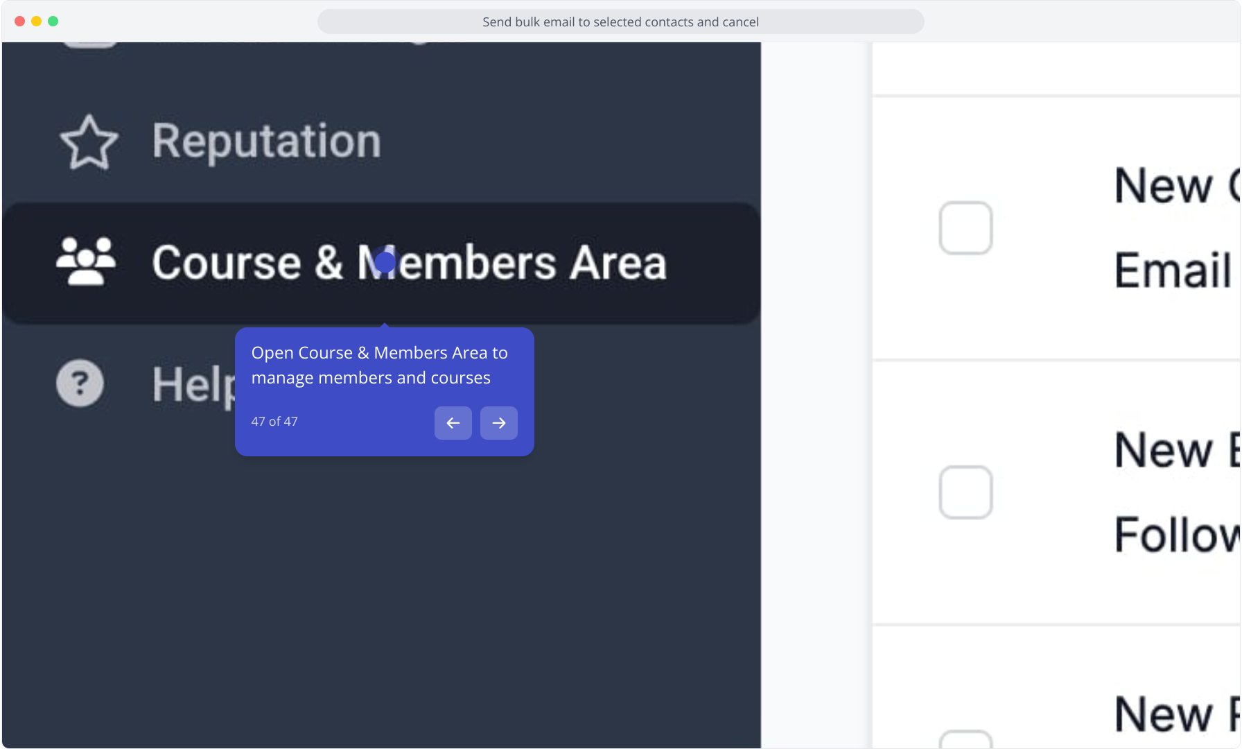 47. Open Course & Members Area to manage members and courses