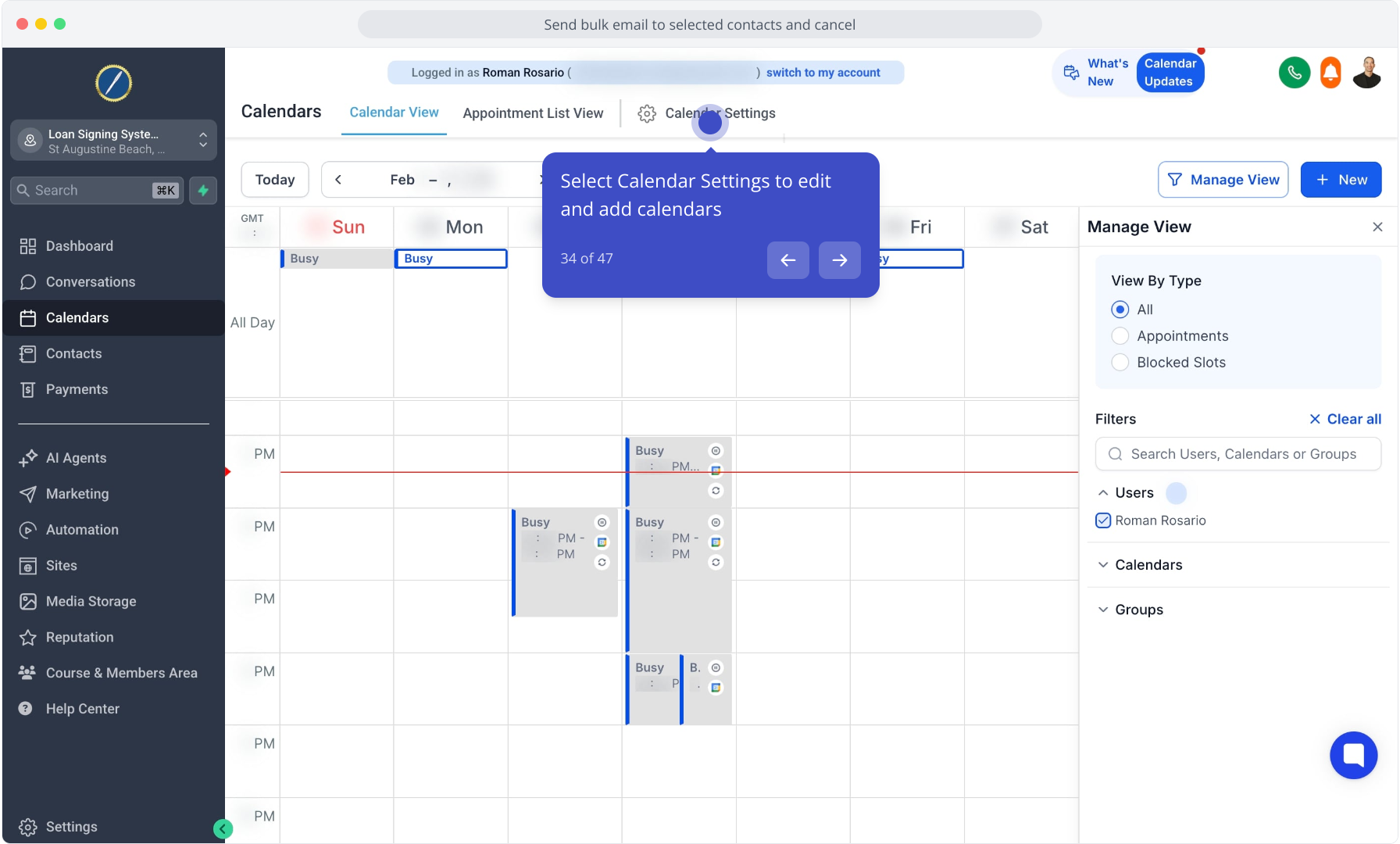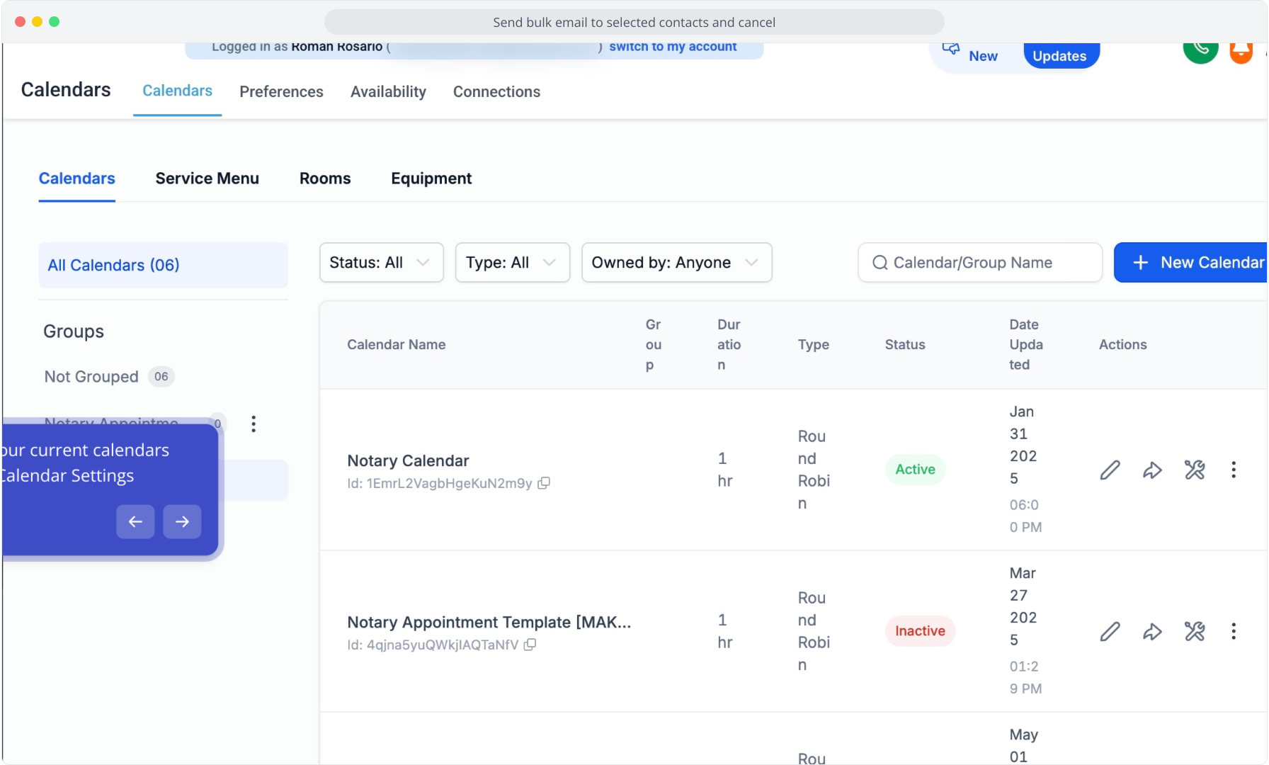 35. Review your current calendars listed in Calendar Settings