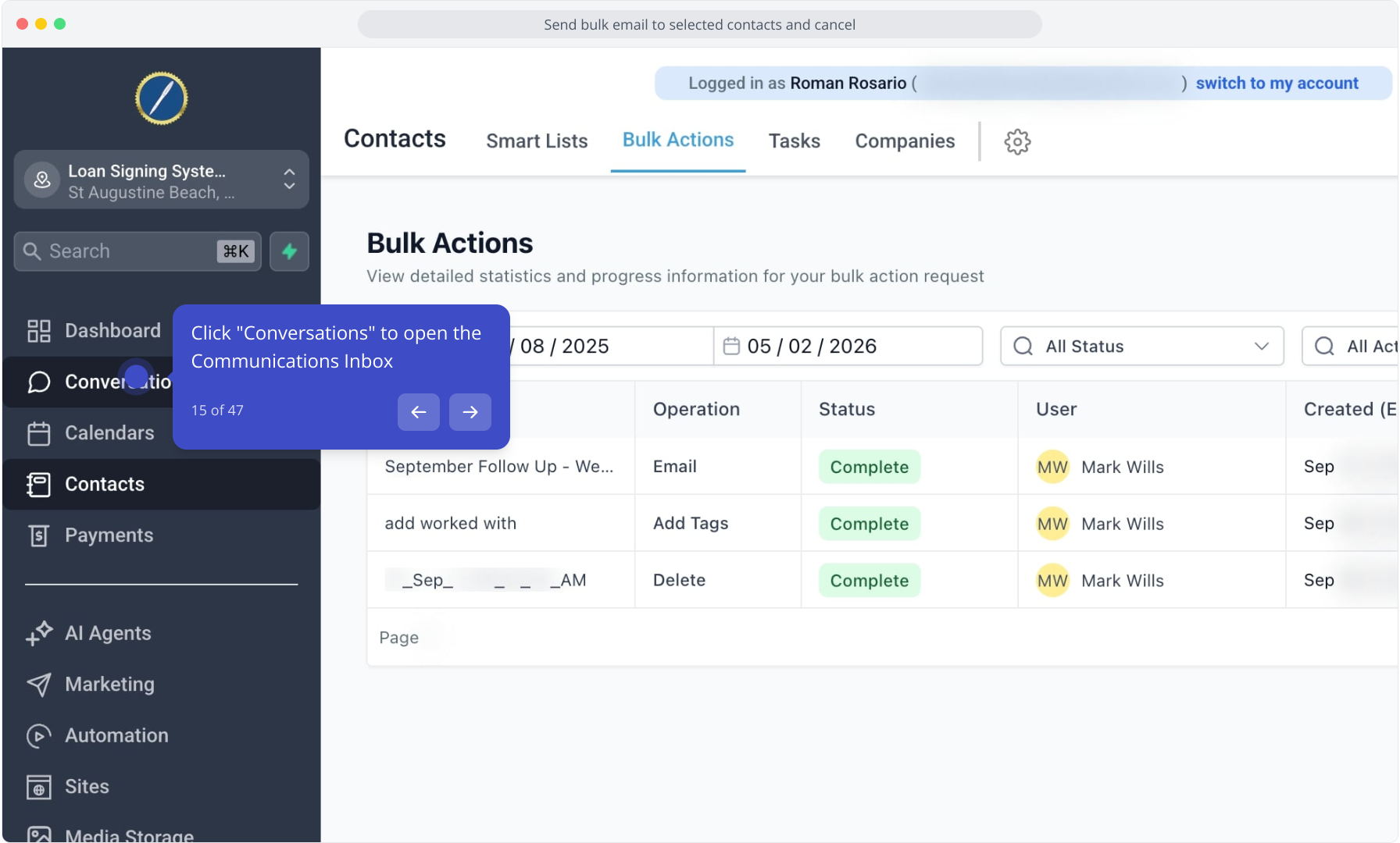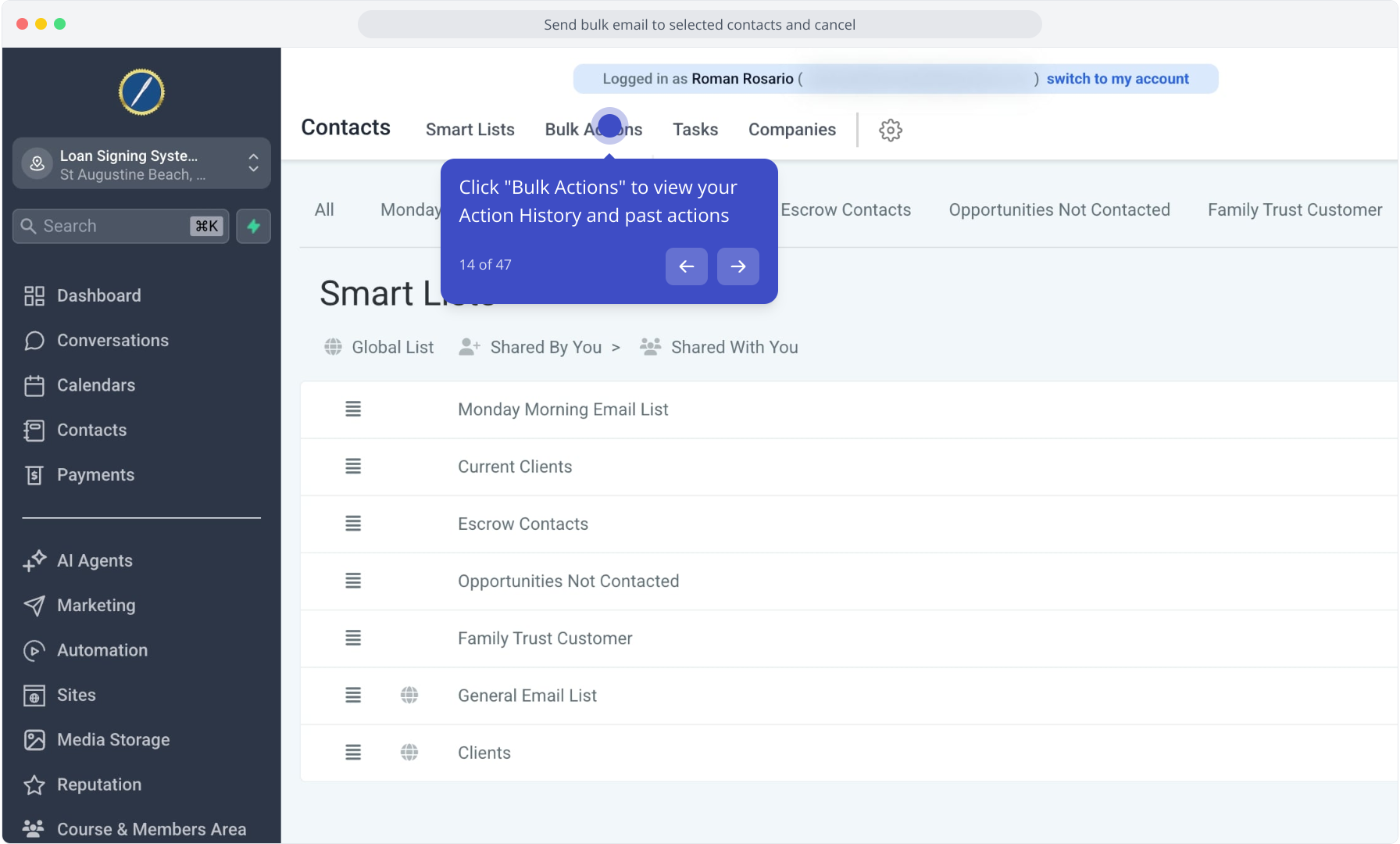 14. Click "Bulk Actions" to view your Action History and past actions