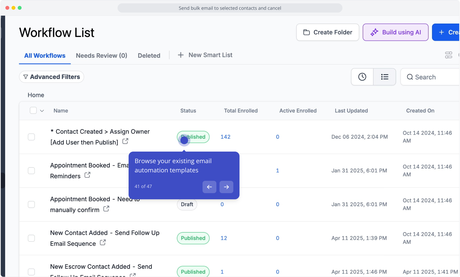41. Browse your existing email automation templates