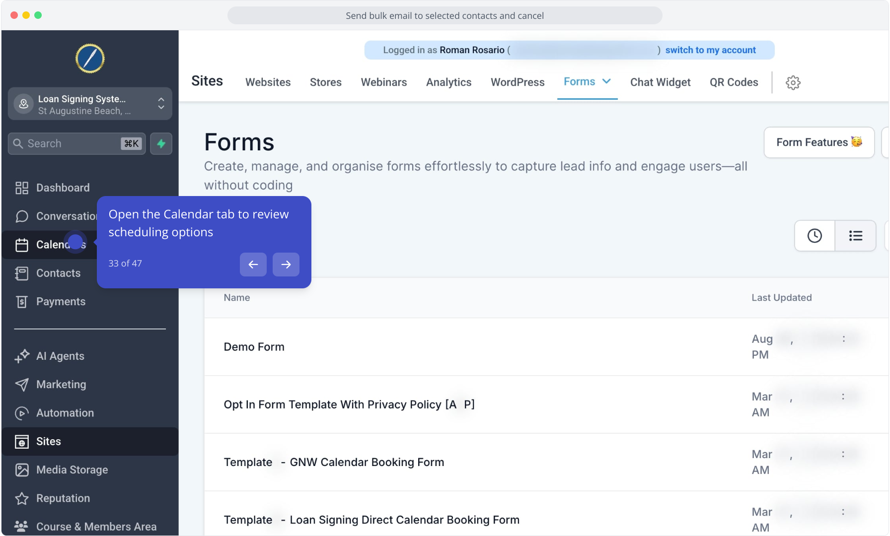 32. Click the Forms dropdown to access form builder and management tools