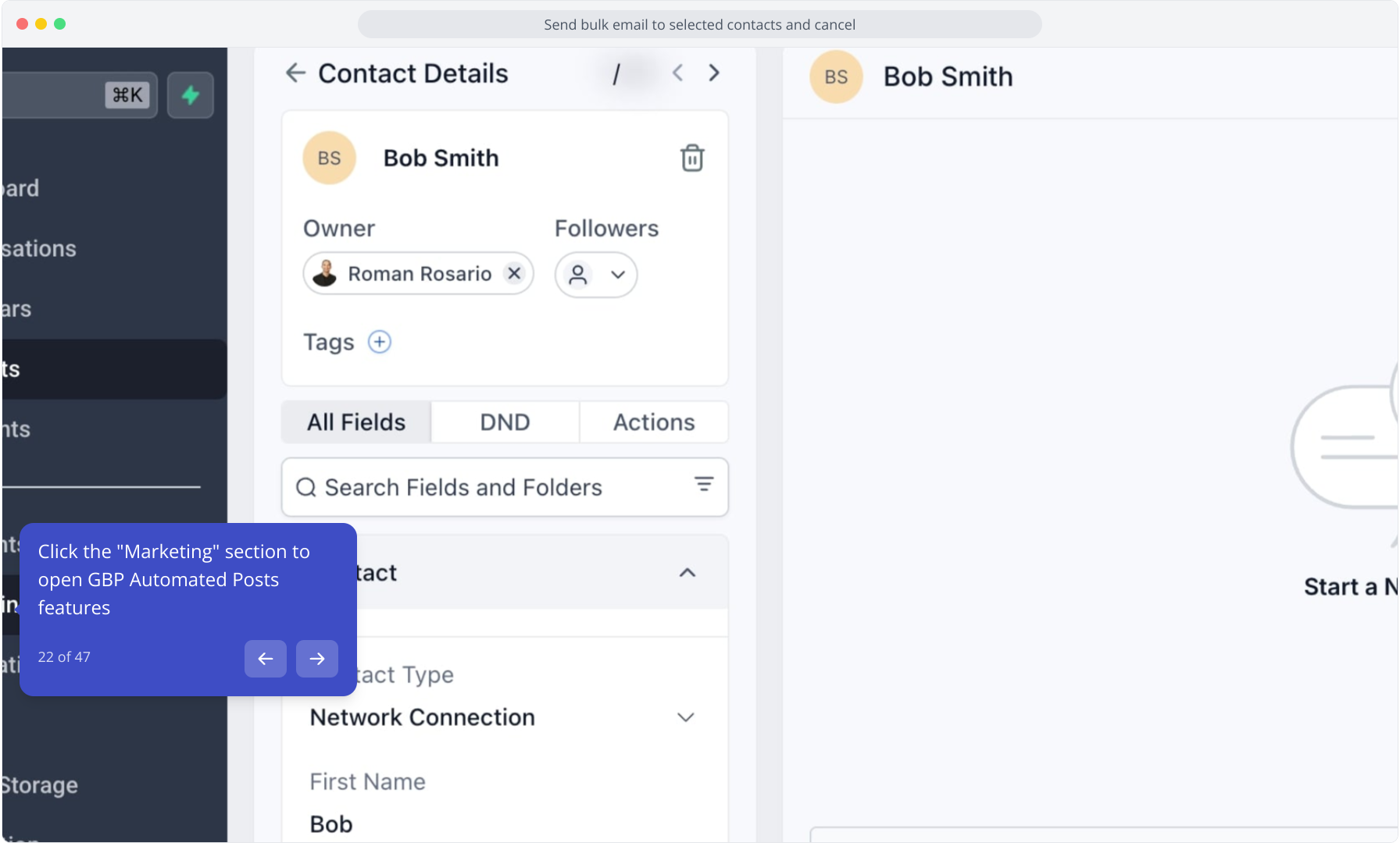 22. Click the "Marketing" section to open GBP Automated Posts features
